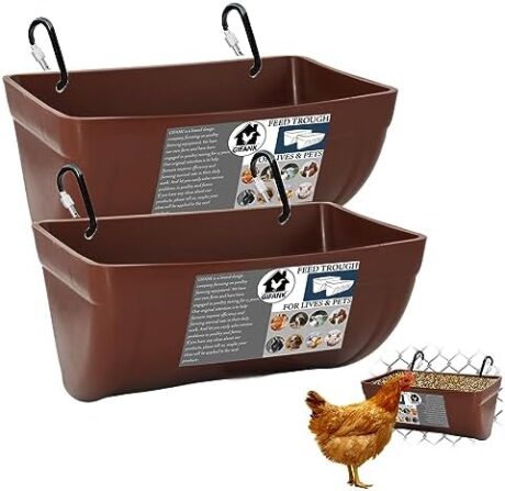 2 Pack Chicken Feeder Feed Trough with Clips Hanging Fence Feeders for Goat Duck Sheeple Piglets Horse Chicken Deer Goose, Pig Poultry Feed Trough Bucket Feeding Container for Livestock