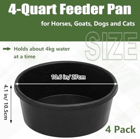 Sadnyy 4 Pcs Rubber Feeder Pan, 4 Quart Rubber Feed Pan Utility Horse Feed Bucket Rubber Dog Bowl Horse Feeder for Cats Dogs Goats Horses Chicken Dust Bath Container Animal Feeding, 10.6 x 4.1 Inch