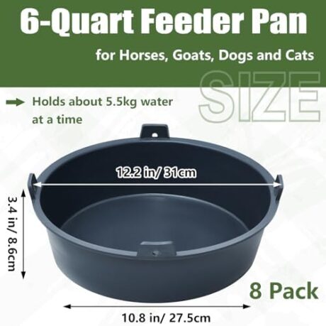 Sadnyy 8 Pcs Ox Tendon Feeder Pan 6 Quart Feed Pan Utility Horse Feed Bucket Dog Bowl Horse Feeder for Cats Dogs Goats Horses Chicken Dust Bath Container Animal Feeding, 12.2 x 3.4 Inch (Not Rubber)
