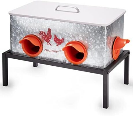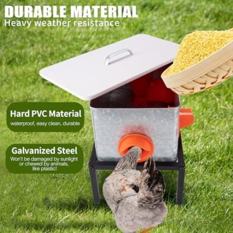 Automatic Chicken Feeder No Waste, 25lb 4-Port All Weather Metal Poultry Feeder with Stopper, Weatherproof Large Chicken Feeder for Chickens, Geese, Ducks, Turkeys, Quails
