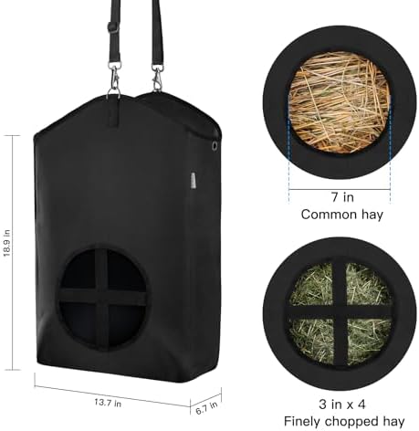 3 Packs Goat Hay Feeder,Hay Bags for Goats,Horses,Sheep,Premium 600D Oxford Cloth,with Metal Fastener and Adjustable Open Feed Hole for Slow Feeding. (1 Black+2Grey)