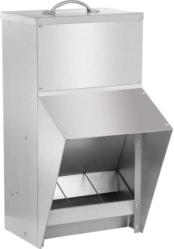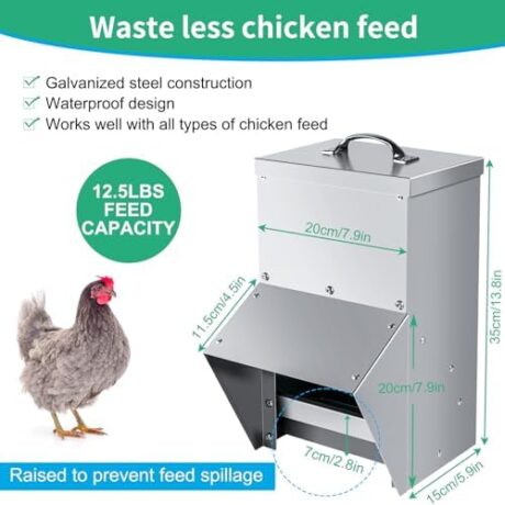 shengyi 11.5-55lbs Galvanized Chicken Feeder – Rat Proof Poultry Feeder with Lid Weatherproof Outdoor Coop Food Dispenser (11.5lbs 8.3×6.3×12.9in)