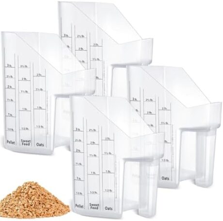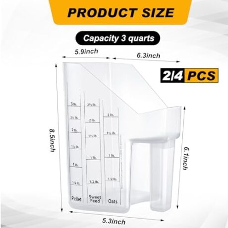 Uiifan Feed Scoop with Measurements 3 Quarts Plastic Measuring Scoop Reusable Pellet Scoop for Horse Goat Sheep Cattle Feeding Supplies (2 Pcs)
