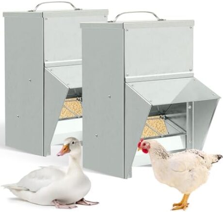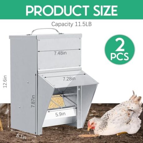 2 Pcs Galvanized Chicken Feeder Weatherproof Poultry Food Dispenser with Lid Chicken Food Dispenser Duck Feeder Rat Proof Chicken Feeder for Chicken Duck (11.5 lb)