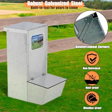 Hog Feeder, 2.2 Bushels Capacity, Durable Galvanized Steel Hog Feeder, Moisture Proof Piglet Creep Feeder with Protective Rubber Sides, 2 Top Door Fix Position, All Nuts Pre-Installed, Silver