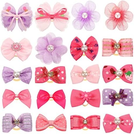 20 Pcs Dog Hair Bows for Small Dogs Hair Accessories Puppy Hair Bows for Dogs Small Dog Bows Cute Grooming Bows with Rubber Bands Handmade Puppy Bows with Rhinestones Pearls for Puppy PET Dog