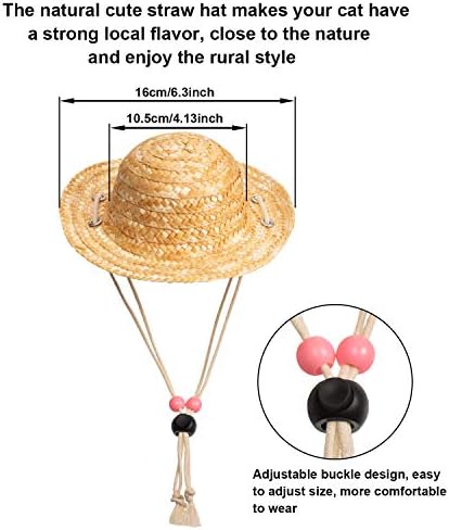6 Pieces Pet Dog Cat Costume, Pet Sunglasses and Summer Pet Straw Hat with Faux Gold Chain Collar, Classic Funny Pet Accessories for Pet Cat Puppy Small Medium Dog Birthday Cosplay Party (Cute Style)