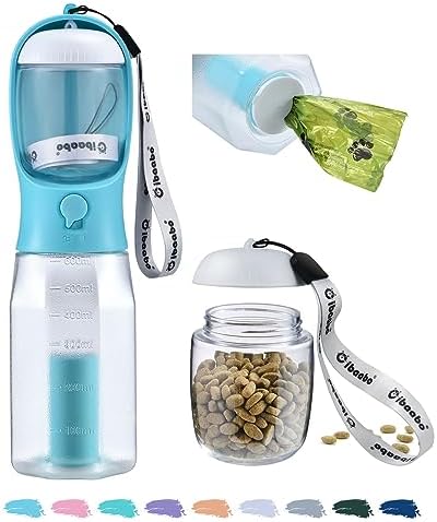 Dog Water Bottle with Food Container & Poop Bag Holder, Travel Water Bowl, Portable Pet Dispenser, Dog Stuff Accessories Items, Puppy Essentials Necessities for Yorkie Chihuahua Walking Hiking
