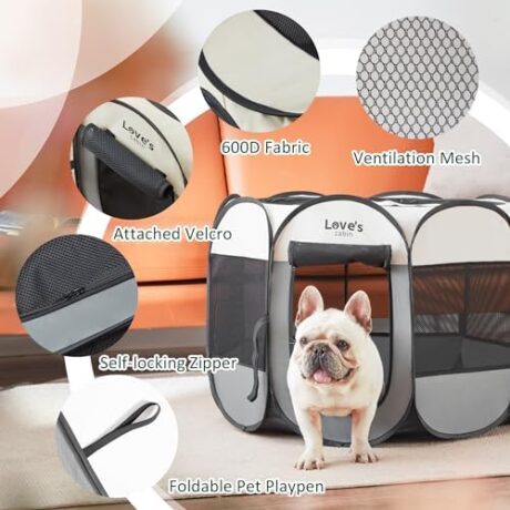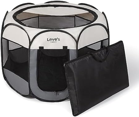 Love’s cabin Pet Puppy Dog Playpen, Small Dog Tent Crates Cage Indoor/Outdoor, Portable Playpen for Dog and Cat, Foldable Pop Up Dog Kennel Playpen with Carring Case, Removable Zipper Top, Grey
