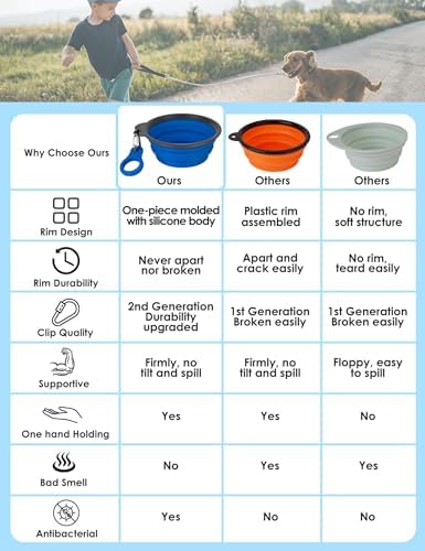 Aonkey Collapsible Dog Bowls with Bottle Carrier, 2 Pack Travel Dog Water Bowl Upgraded Carabiner, One-piece Molded Rim No Fall Off or Crack, Foldable Silicone Portable for Pets Walking Hiking 15oz