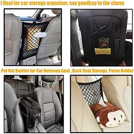 Dog Car Net Barrier Pet Barrier with Auto Safety Mesh Organizer Baby Stretchable Storage Bag Universal for Cars, SUVs -Easy Install, Car Divider for Driving Safely with Children & Pets