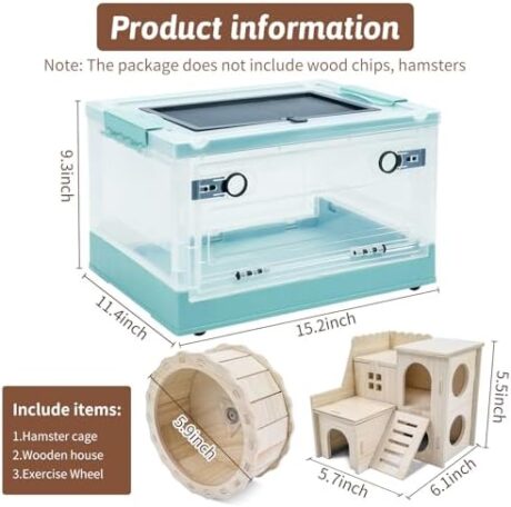 Portable and Foldable Hamster Cages with Wheels, Castle Habitat, and Exercise Wheel, Easy to Move and Store Suitable for Guinea Pigs, Rat and Other Small Animals (Blue)