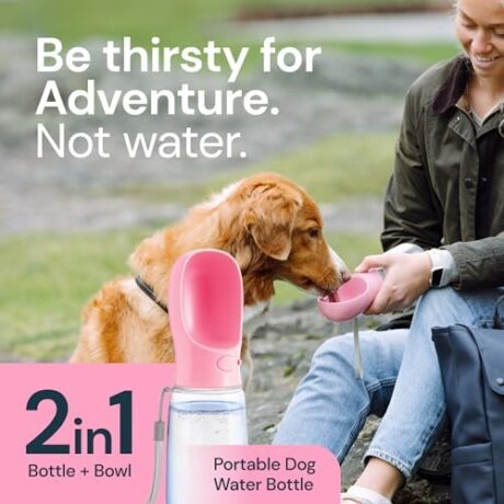 MalsiPree Dog Water Bottle Portable – Leak Proof and Lightweight Water Bottle for Dogs – Dog Travel Water Bottle with Bowl – Dog Walking Accessories (19OZ, Pink)