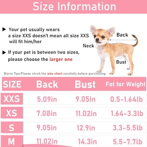 – Fit for Weight Ranges – XXS、XS、S dog sweater For 0.5 lbs to 5.5 lbs of the pet Eg, Chihuahua, Pomeranian, Yorkshire Terrier, Shih Tzu puppy, Poodle, Mini dachshund, Maltipoo, Boston terrier puppy, Yorkie,Toy poodle puppy, Miniature poodle, min pin and so on.