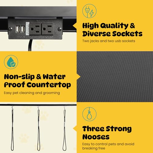 Non-slip Rubber Desktop: Anti-slip panel 47.3*23.7inch, waterproof and anti-slip, made of non-slip plastic and rubber composite materials. The dog table can ensure your pets’ safety and makes it easy to clean and remove hair and debris, at the same time, there are jacks and USB to meet the needs of daily repair