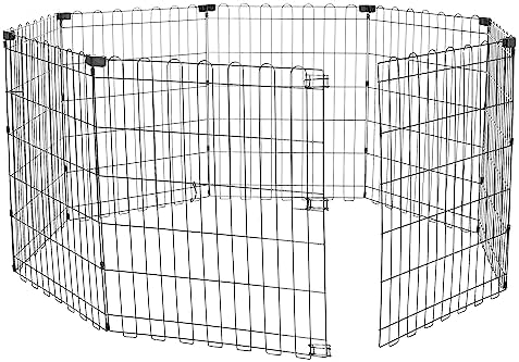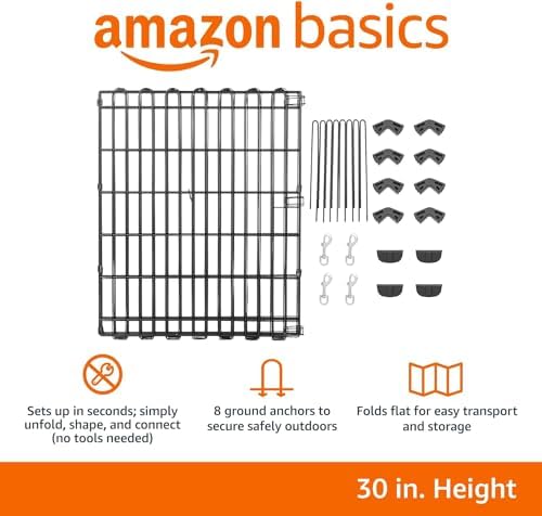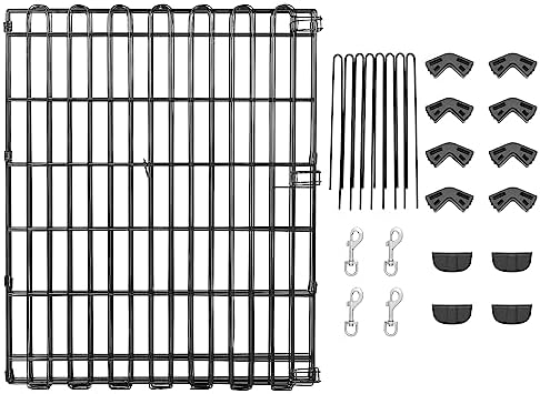 8 connected panels with thumb clips for connecting the ends together; 8 ground anchors for secure placement outdoors; made of durable iron wire with a rustproof finish