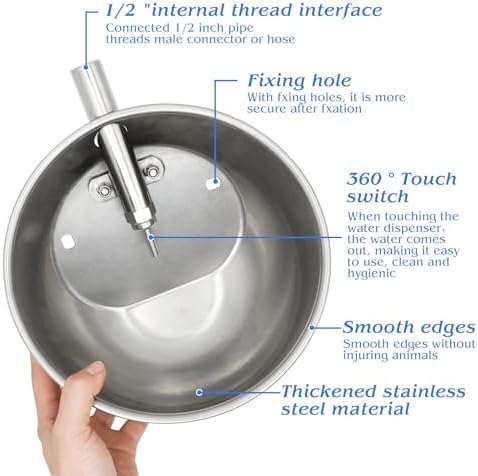 AUTOMATIC WATERER for LIVESTOCK: When pig’s sonut hit the water nipple, water will flow out automatically, and stop when their snout is away, so you don’t have to keep refilling the bowl and the livestock can access fresh water whenever they like.