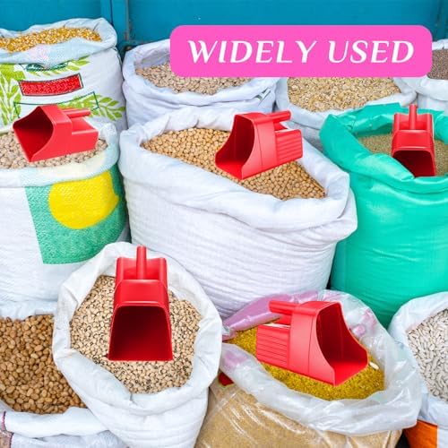 Handy Handle Design: these plastic scoops feature a suitable, heavy duty handle design for added convenience; The handle makes it comfortable to grip and scoop feed from large bags or buckets, improving the overall feeding process; The use of the feed scoop allows you to better control the amount of feed, helping to reduce waste