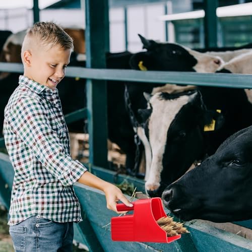 Multipurpose Tool: the horse feed scoop is a versatile tool ideal for scooping feed, adding supplements, sorting seeds, and even cleaning; This versatility makes it useful, not just for farms, but also for zoos, stables, or any establishments that require precision and efficiency in feeding animals; The red color adds a vibrant activity to the overall design, making it both functional and visually appealing