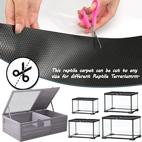 Custom size and material bearded dragon accessories – size: 17.7inch*79inch, just the right size for two 40 gallon reptile tank liners, if your reptile terrarium is another size, don’t worry as it can be cut to any size you need, the high density soft material is easy to cut and fit, no tearing when cutting and punching. No tears and no smell.