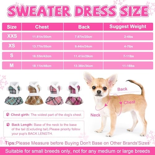 【High quality fleece fabric】The pet sweater dress is made of high quality fleece fabric, which is cozy, soft, warm and easy to take care of. Fashionable colors dog clothes for small dogs girl puppy clothes for small dogs girl small dog clothes female, Wearing the pet pullover sweater skirt can relieve your pet’s anxiety and make your pet feel comfortable in a cozy wrap. This winter chihuahua clothes puppy sweater is machine washable, but please do not bleach.