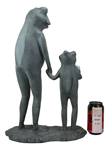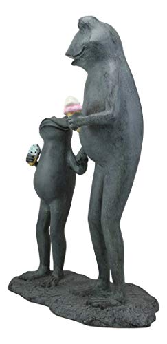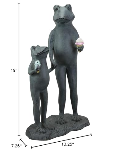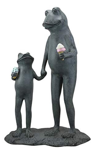 Add a playful touch to any landscape with this adorable sculpture of a parent and child frog holding hands eating ice cream. Even frogs have a summertime favorite treat! This frog family will grace your garden, lawn, patio, pool side with joy and whimsy!