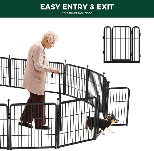 🐶【Multi-scenario use】The FXW dog playpen features a powder coating that will help protect against rust and extend its life, which makes it ideal for RV camping, traveling, or for use in the yard. When used indoors, we recommend placing it on a dog pad or carpet to prevent the rods from scratching the floor, or please try our new floor protectors or dog pee pad for the same purpose.