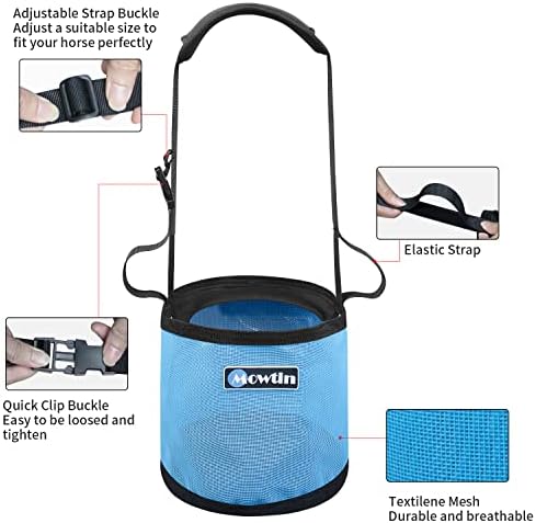Product Size: The feed bag is 10.3 inches Diameter and 9.9 inches Height, the strap is 39.3 inches long, and the buckle can be easily adjusted by fast fastening.