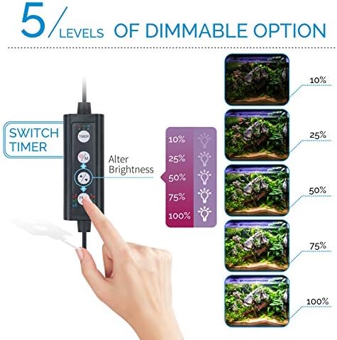 [Build in Timer Control] Easy to program by using switch timer. It allows you to dim or intensify the output or change light color. Sliding brackets adjust to the tank smoothly and sit steadily. Color changing loop is an extra bonus. DC powered adaptor is safe to use and energy saving