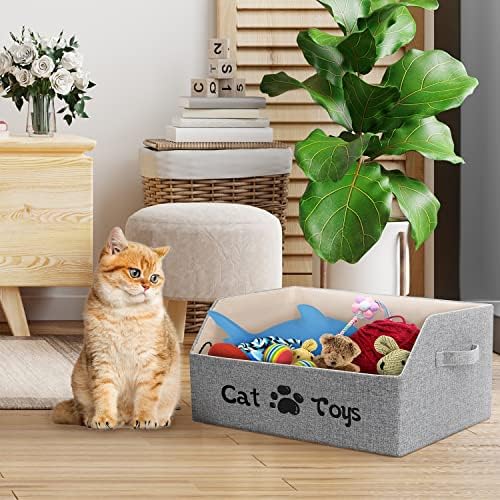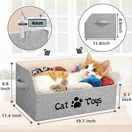𝐋𝐀𝐑𝐆𝐄 Size of 19.7″ (Length) x 11.4″ (Width) x 8.6″/5.1″(Upper Hight/Lower Hight) cat toy bin, which features the large capacity to keep all your cat’s stuff relatively organized, such as cat toys, cat treats, collars, blankets or other pet supplies.