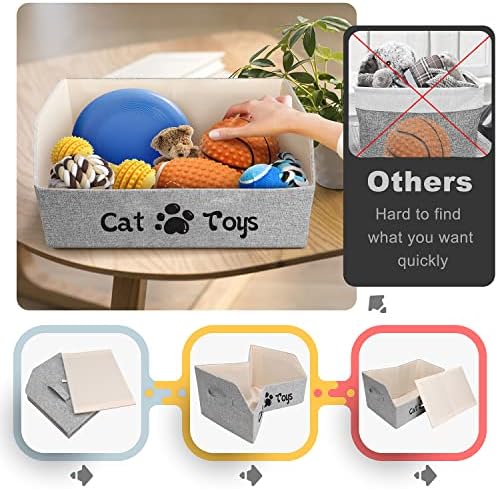𝐂𝐋𝐄𝐀𝐑𝐋𝐘 𝐕𝐈𝐒𝐈𝐁𝐋𝐄 Designed with a lower front edge (5.1 inches high) to allow your cat to reach their toys on the bottom, unlike most cat toy storage. Also clearly visible for pet owner to organize these pet supplies quickly and conveniently.