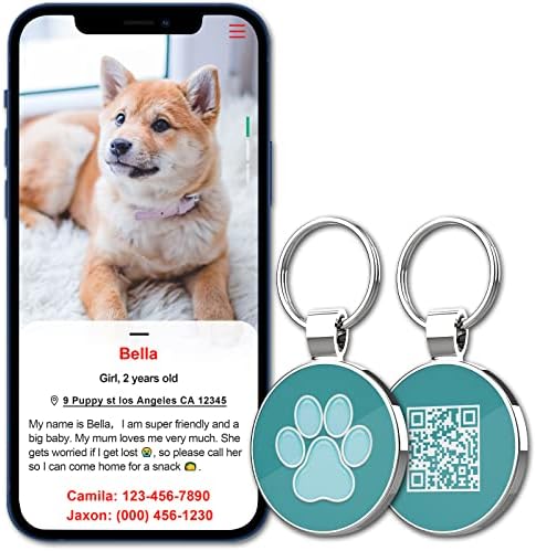 【Setup and use】 Scan the tag QR code to activate the tag, Links to free pet profile page, Can enter multiple emergency contact/ upload multiple pet photos/ Home Address/ Medical Info etc of your pet. One account can manage multiple pets. NO APP REQUIRED!