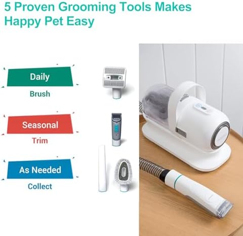 【Vaccumable Pet Grooming Kit】: Traditional home grooming tools bring about a lot of mess and hair in the home. But our P1 Pro grooming kit with vacuum function collects 99% of pet hair into a vacuum container while trimming and brushing hair, which can keep your home clean, and there’s no more tangled hair and no more piles of fur spreading all over the house.