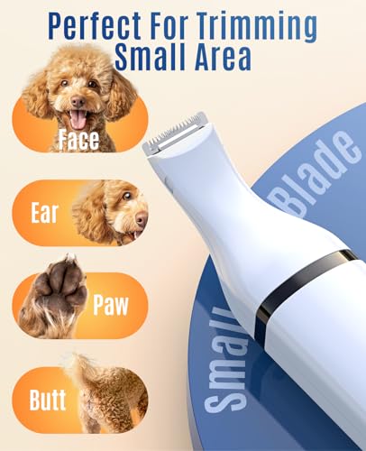 ★Safe and Sharp Blade & Powerful Motor:Upgrade stainless steel fixed blade can provide excellent cutting performance. Works great for trimming small areas like paws,ears and eyes.
