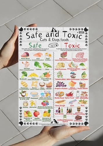 Unlock the Secret to Healthy and Happy Pets with Our Magnetic Pet Food Safety Guide! As devoted pet parents, we understand the importance of providing our furry friends with the best care, especially when it comes to their nutrition. Introducing our Magnetic Pet Food Safety Guide – the ultimate tool to ensure your pets enjoy a diet that promotes their health and happiness. Key Features: 🐾 Comprehensive Information: Our magnetic board is a treasure trove of knowledge, offering a comprehensive guide to safe and toxic foods for both dogs and cats. Stay informed and make smart choices for your pet’s well-being. 🌈 Color-Coded Categories: Foods are color-coded for easy identification, providing a quick reference guide for pet owners. Clearly distinguish between safe and toxic items to enhance your pet’s dietary safety. 💪 Built-In Magnetic Convenience: With a strong built-in magnet, this guide easily attaches to your refrigerator or any magnetic surface. Enjoy the convenience of quick access, making responsible pet ownership a breeze. 📏 Perfect Size for Convenience: The A4 dimensions (8.3 x 11.7 inches) make our board the perfect size for easy placement in your kitchen or pet care area. It’s compact yet informative, fitting seamlessly into your daily routine. 👩‍⚕️ Vet-Approved Content: Rest easy knowing that the information provided is vet-approved. Our guide offers trustworthy guidance on your pets’ dietary needs, empowering you to make informed choices. 🎓 Educational Tool: More than just a guide, our magnetic board serves as an educational tool. Gain a deeper understanding of your pet’s nutritional needs and foster a healthier, happier life for your four-legged companions. 🌟 Attractive and Informative Design: We believe that learning should be engaging. Our board combines an attractive design with informative content, making it a delightful addition to your home.