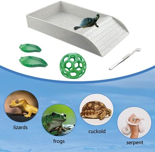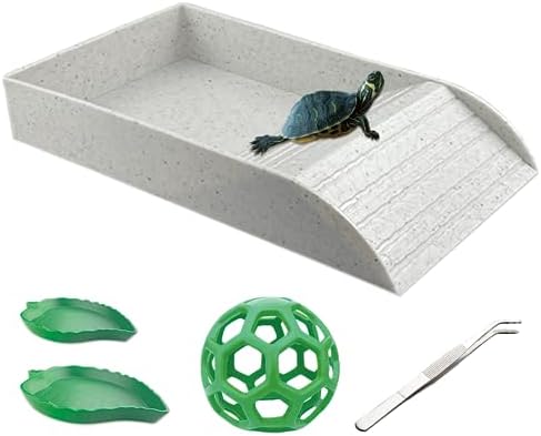Complete Set: We have 1 tortoise bath tub (13.98 x 7.87 x 2.36 in), 2 tortoise water dishes (4.72 x 3.74 in/5.91 x 4.72 in), 1 food tweezers 5.51“ and 1 food ball 5.51“ in diameter, the complete amphibian feeding set for you! Save time looking for other feeding accessories and save a lot of money at the same time, it is a must-have accessory for amphibian lovers