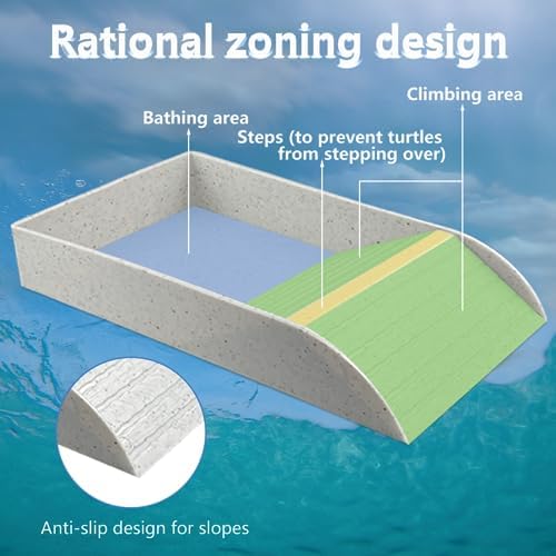 Wavy Texture: The slope of turtle habitat has a wavy texture design, with anti-slip effect, can let your pet in and out of turtle habitat, avoid the risk of slipping and tipping, low slope design makes it easier for pets in and out of turtle habitat, you can rest assured that it can play in it